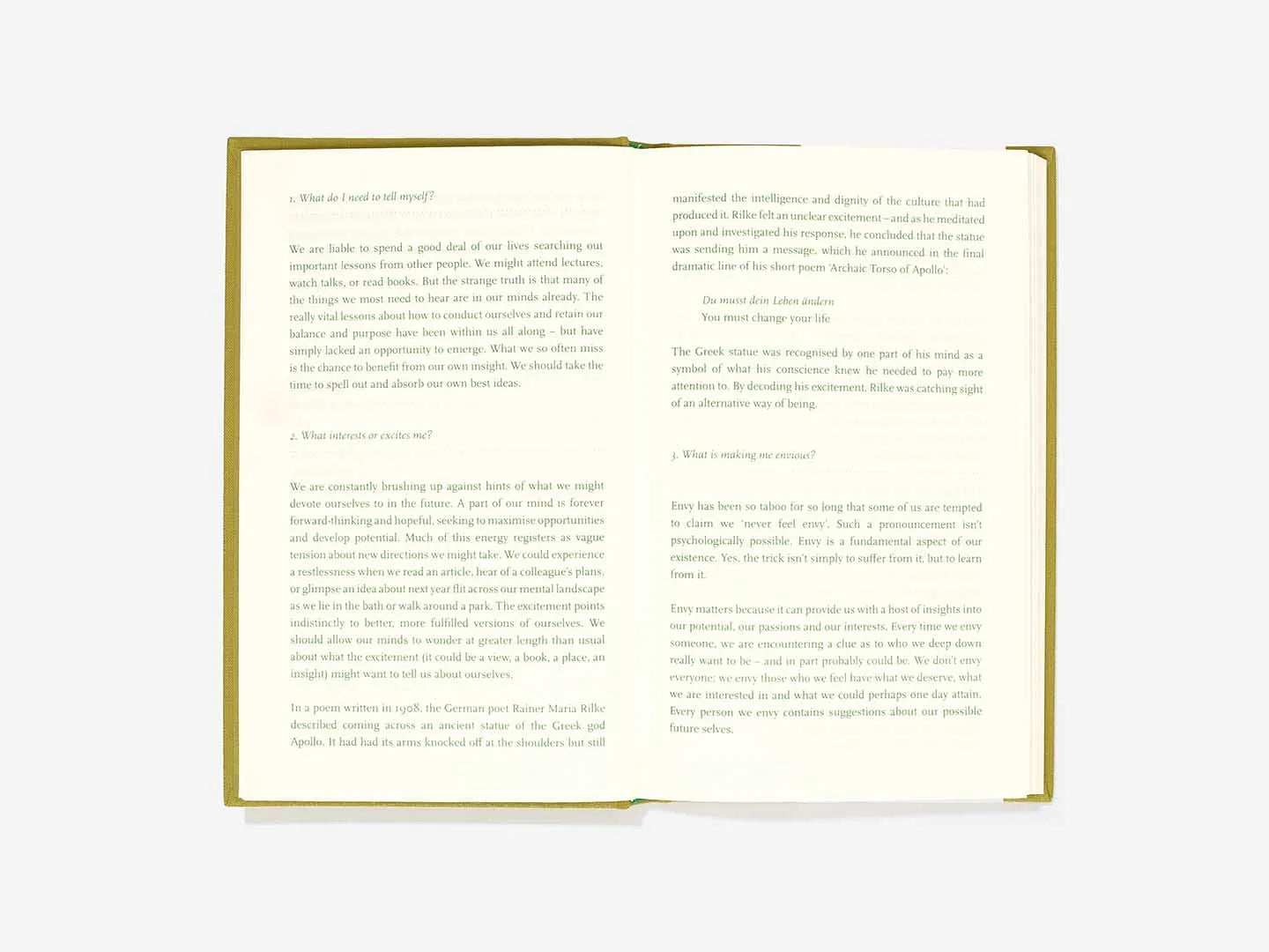The journal helps us to carve out time to focus on someone it is too easy to neglect: ourselves. With the help of some well-focused and proven questions, the journal prompts us to clarify our goals, assess our options and plot a route to a flourishing future. This is a tool for a newfound feeling of lightness, creativity and purpose.